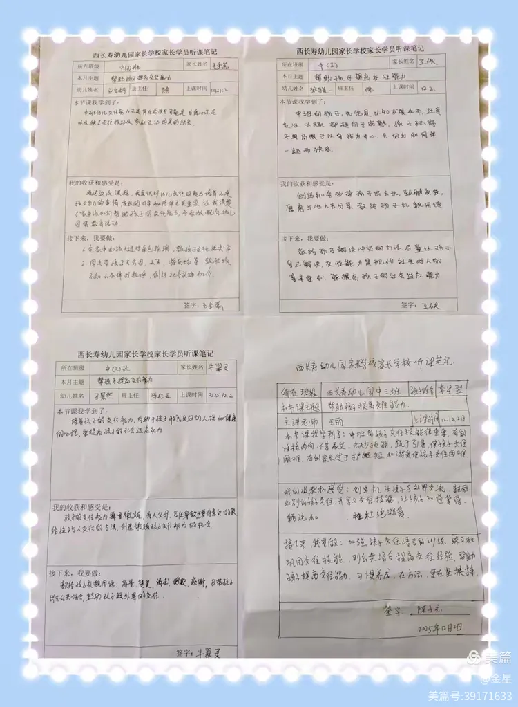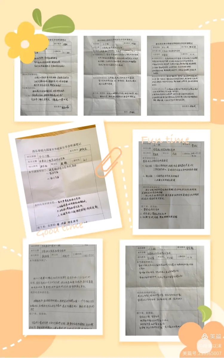 观看课程视频后,家长们收获满满,认真书写了听课笔记,记录育儿心得。